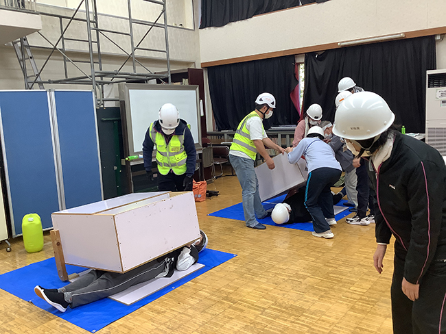 ![]() | 家具に挟まれる体験をしました。30kgの一番軽い家具でも挟まれると全く動かせず、家具を固定しておくことの大切さを身をもって知りました。 | ![]() |