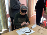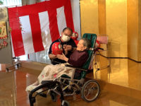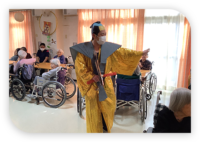 ![]() | お楽しみ企画では、グループに分かれて福笑いを行い、会場が大きな笑い声に包まれました。 目隠しを外した瞬間の皆様の楽しそうな笑顔を拝見でき、私たち職員も大変嬉しい気持ちになりました。 | ![]() |