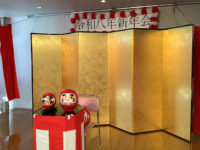![]() | 皆様より昨年の願い事が叶ったとのことで、無事に目標が達成されたと、年女の代表者様にだるまの右目を入れていただきました。また、新しいだるまに新たな一年の願いを込めて、左目の目入れも行っていただきました。 | ![]() |