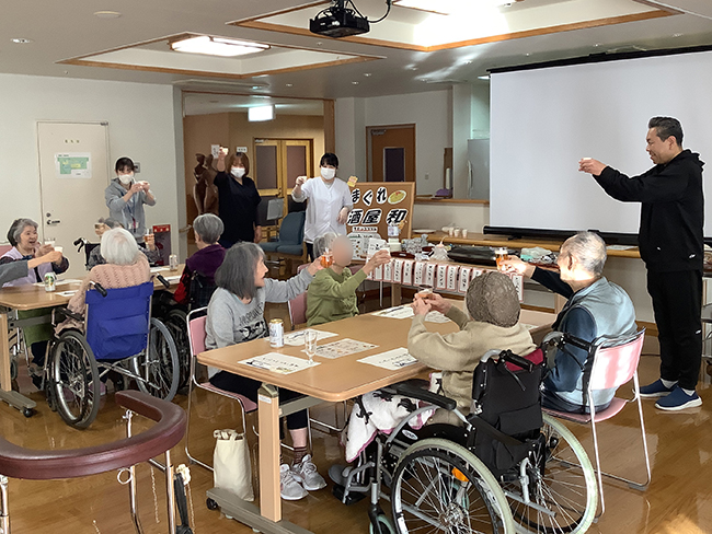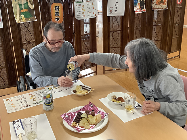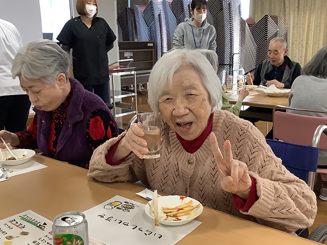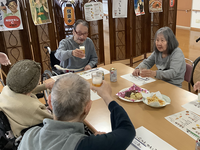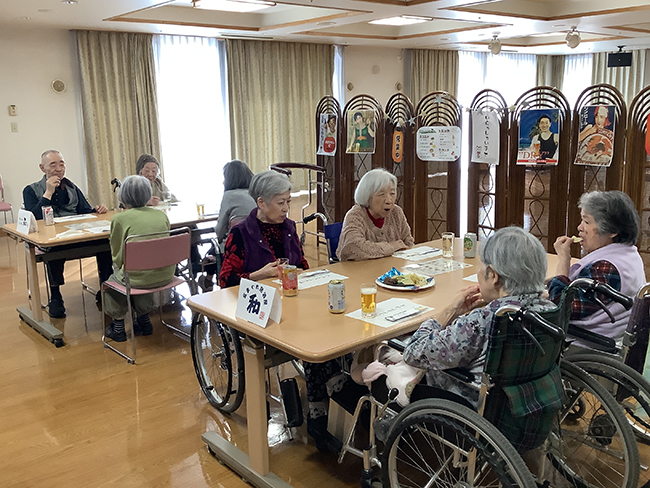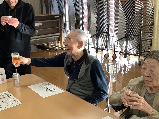 ご利用者同士で飲み物を注ぎあい、周囲の方々との会話を楽しまれました。