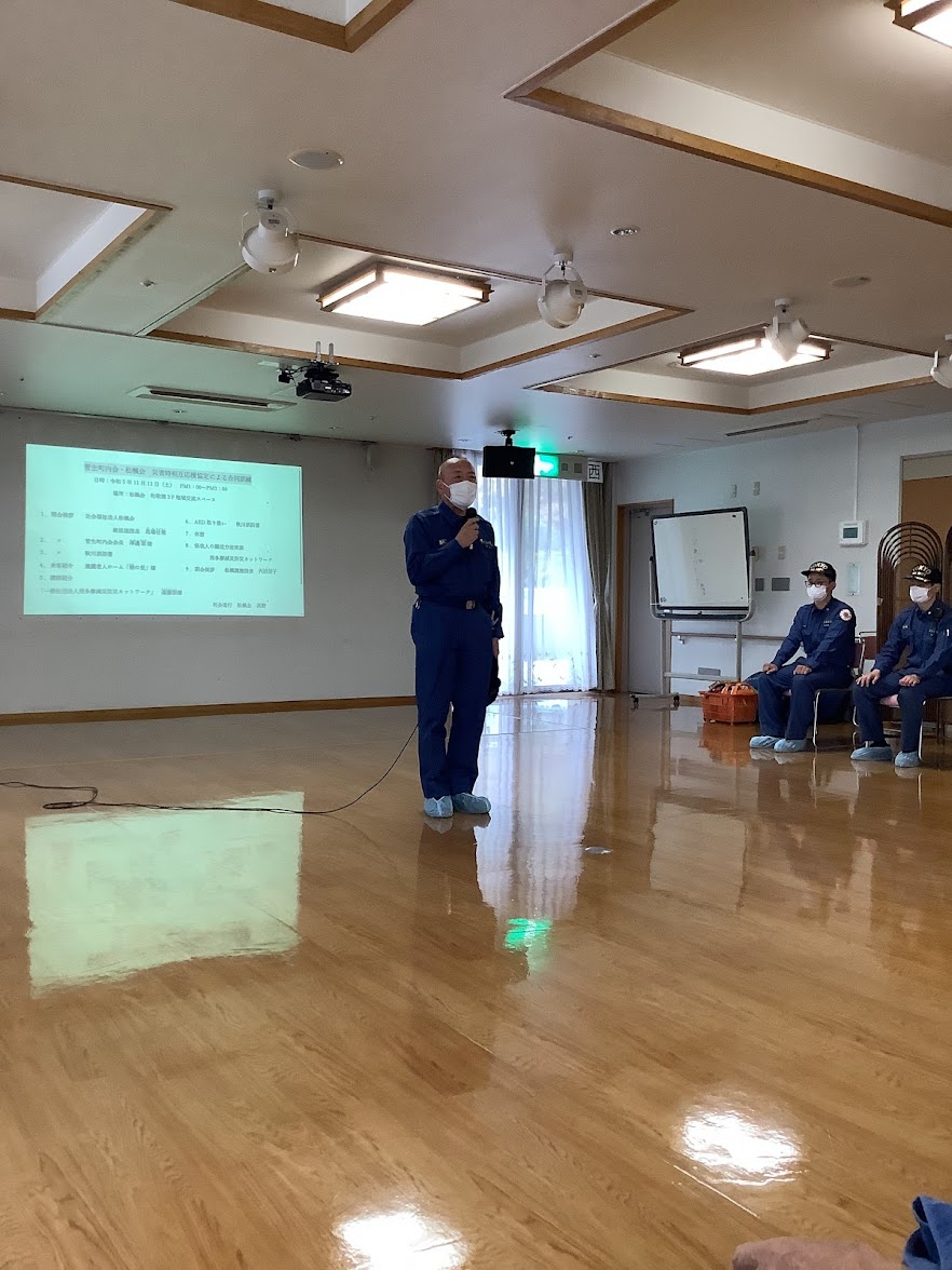 11月11日に合同訓練を行いました♪ 2023年11月11日 最終更新日時 : 2026年2月6日 松楓会 11月11日に菅生町内会応援協定における合同訓練を行いました! あきる野の消防署の方や地域の皆様や西多摩・滅災防災ネットワークの方をお招きしAED体験や災害用の担架の体験など貴重な体験をさせて頂きました✨ 前の記事10月31日にハロウィンスペシャルランチを実施しました🎃2023年10月31日次の記事お散歩日和🍁2023年11月13日